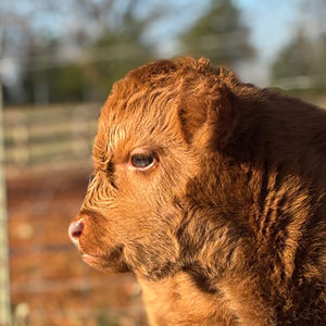This little Yellow, Highland, Heifer was born on July 3, 2024 before all the fireworks started so we named her Freeda! Her Dam is our Black Highland, Martha who is also our best Mama. Her Sire is Tater a Chondro Positive Dun Bull. UC Davis confirmed her as Non-Chondro , Yellow Brindle! She is full of energy, very independent and would be a great addition to someone's herd! We have plenty of pics and video if y'all need more.